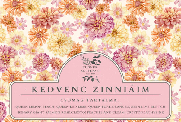 Egy doboznyi színpompa! A Queen sorozat kifinomult árnyalatai (Lemon Peach, Red Lime, Pure Orange, Lime Blotch) találkoznak a Benary Giant Salmon Rose lenyűgöző méretével, miközben a Cresto! Peaches and Cream és Peachy Pink zinniák habos-babos szépsége teszi teljessé ezt a különleges válogatást. Ültesd el őket, és hagyd, hogy a kerted a szivárvány színeiben ragyogjon!