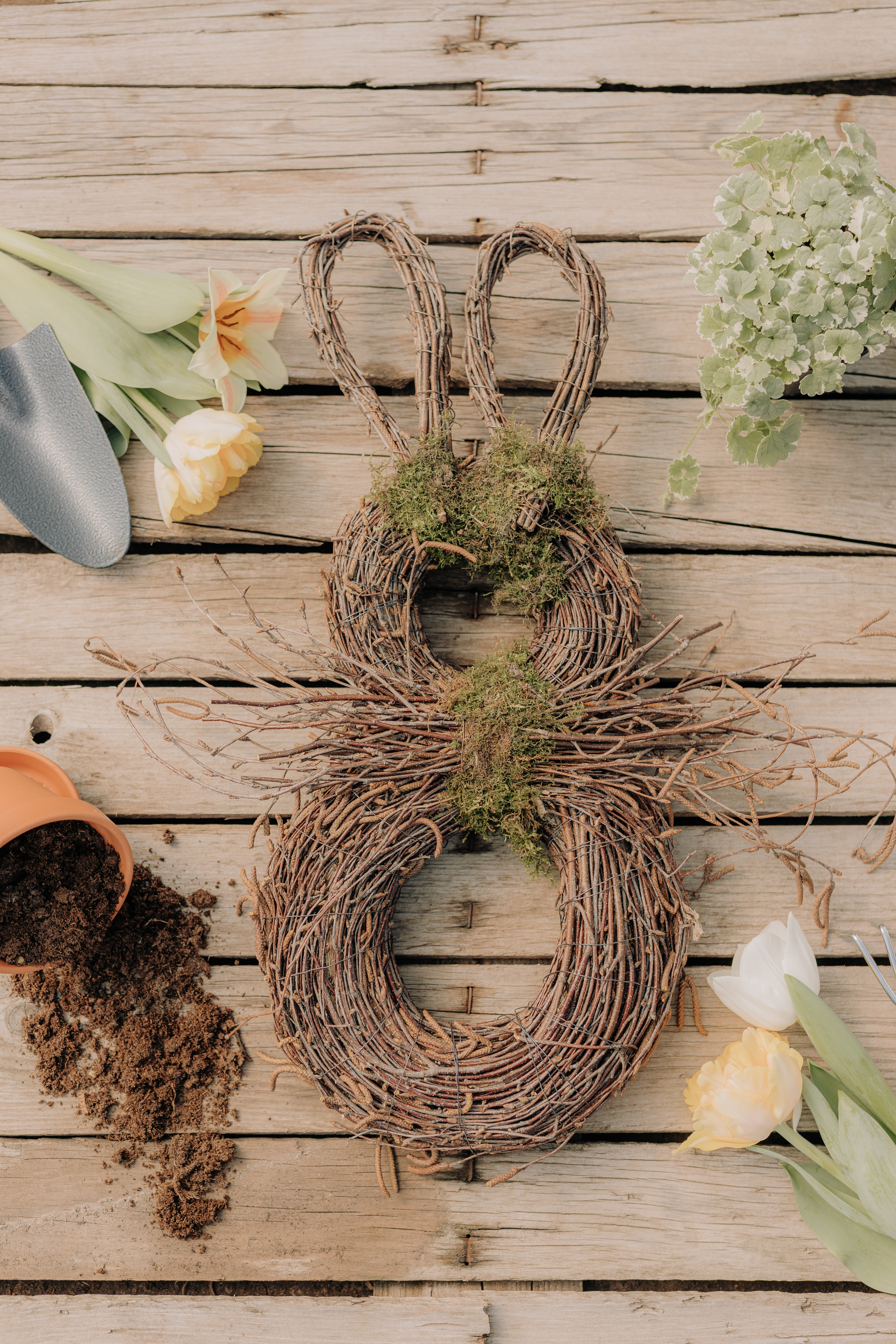 Kézzel készült nyuszis ajtódísz Húsvétra.
